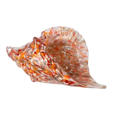 HANDCRAFTED DECOR This mouth-blown glass shell impresses with its unique craftsmanship and adds an individual touch to any room. VERSATILE COLOR RANGE The shell combines orange with clear, copper, red and white accents that blend harmoniously into different home styles. IMPRESSIVE SIZE:With a height of 14 cm, width of 28 cm and depth of 13 cm, this glass shell is a striking highlight in any room. HIGH QUALITY MATERIAL Crafted from durable glass, the shell not only provides aesthetic beauty but also durability and stability. PERFECT FOR COLLECTORS This decorative shell is ideal for collectors of glass objects and lovers of handmade art.