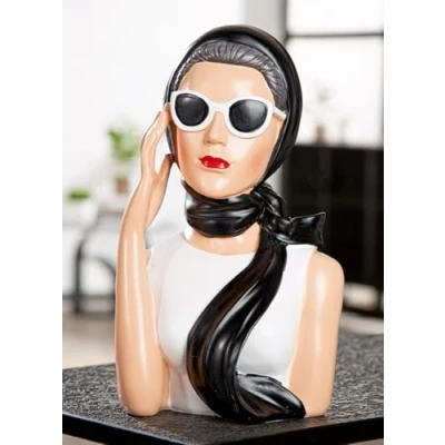 Elegant Lady Audrey figurine made of high quality resin in classic black and white design, ideal as a stylish decorative piece for your home. Measuring 27.5 cm tall and 17.5 cm wide, this figurine is a striking focal point on any shelf or table. The delicate shape of a woman adds an artistic touch to any room and is perfect for modern and classic interior styles. Equipped with felt pads to protect surfaces and allow easy movement without leaving scratches. Versatile use as a gift idea for art lovers or as a special highlight in your own collection.
