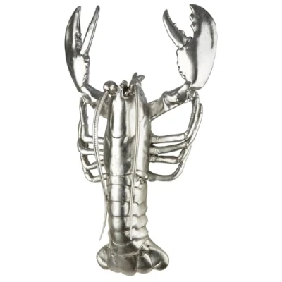 STYLISH WALL DECOR The silver resin lobster adds a modern metallic look to any room and will attract everyone's attention. HIGH QUALITY MATERIAL Crafted from durable resin, the figurine provides durability and impressive attention to detail. VERSATILE PLACEMENT With a height of 41.5 cm and width of 24.5 cm, the lobster fits perfectly in living or office space. Easy to install: light weight and compact dimensions allow for easy installation on any wall. UNIQUE DESIGN The lobster shape in silver color adds an elegant accent and perfectly complements modern home styles.