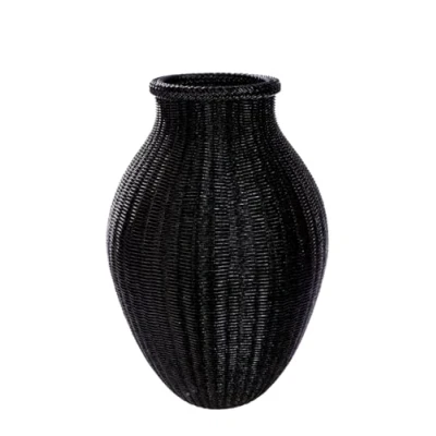 GILDE Resin Floor Vase Weave Bulbous Textured Woven Pattern Black Height 67 cm x Diameter 44 Decorative