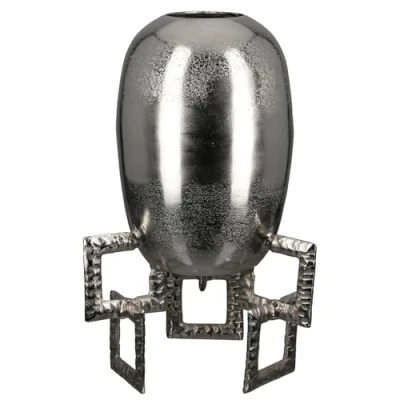 Stylish aluminium vase in silver with textured finish, ideal for modern living spaces. Waterproof design protects surfaces and allows for versatile uses. Round shape with 40cm height and 25cm width, perfect for large floral arrangements. 8cm hole diameter provides sturdy support for flower stems and decorations. Timeless design that blends seamlessly into different interior styles.