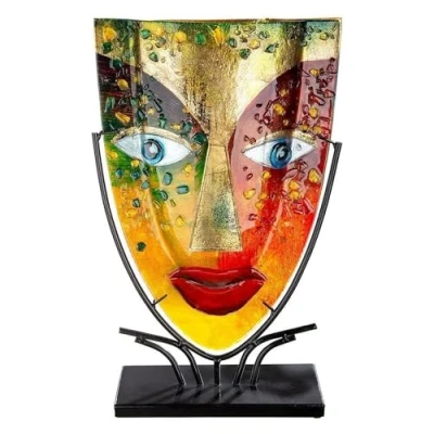 GlasArt Decorative Vase Face Blue Eye With colourful decorative stones, front and back with face Green/yellow/red, with colourful decorative stones Glass Great gift idea for occasions such as birthdays, weddings, anniversaries, retirement, Christmas, Mother's Day, etc.