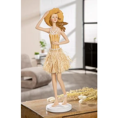 ELEGANT RESIN FIGURINE - The Suzanne figurine impresses with its creamy white colourway and natural accents, ideal for stylish living spaces. UNIQUE DESIGN The striped matte surface and the shape of a woman make this figurine a special eye catcher. Practical details: equipped with felt gliders, the figure protects your furniture surfaces and remains stable in place. VERSATILE DECORATION At 58.5 cm high, the figure is perfect for shelves, tables or window sills. Handmade raffia skirt: the raffia skirt gives the figure a natural touch and highlights the ornate design.