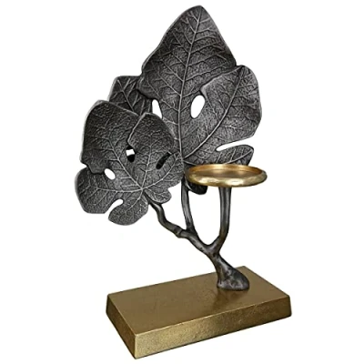 A beautiful ambience lives from the right accessories: with the "Leaf" candlestick, any room will gain in style. The anthracite, gold-coloured aluminium candlestick is suitable for tea lights or candles up to a diameter of 8 cm. Thanks to the leaves with surface structure, it already looks like a sculpture. Create a special feel-good atmosphere with atmospheric light. Dimensions: 38 x 25 x 10.5 cm - Clean with a clean, soft cloth - Do not use abrasive or acidic detergents Modern yet classic - great decoration on the sideboard, side table, living room or dining table. Beautiful gift for your wife, husband, grandma and grandpa, best friend, best friend on various occasions such as birthday, wedding, anniversary, Christmas, anniversary, farewell or retirement