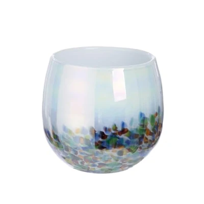 The Arco vase made of glass impresses with its multicoloured, white look and is a highlight in any room. Arco vase, 17 cm high, 19.5 cm diameter, 2.3 kg in weight, made of dyed glass in European handmade. Multi-coloured glass vase Arco, ideal for stylish decorations, combining elegance and craftsmanship. European handmade: the Arco vase impresses with its high-quality workmanship and dyed glass. PERFECT CHOICE FOR DESIGN LOVERS The Arco vase will add color and style to your home.