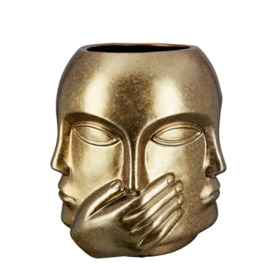 GILDE Vase Flower Ceramic Face Hear Nothing See Say Waterproof European Manufacture Colour: Antique Gold Height 23 cm