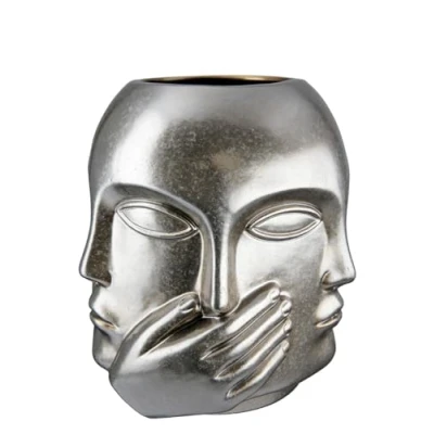 GILDE Vase Flower Ceramic Face Hear Nothing See Say Waterproof European Manufacture Colour: Antique Silver Height 23 cm