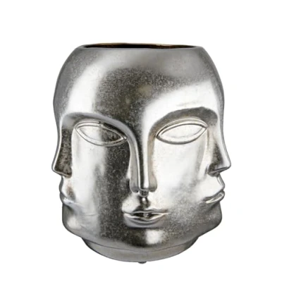 GILDE Vase Flower Ceramic Face Waterproof European Manufacture Colour: Antique Silver Height 23 cm