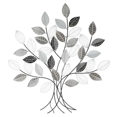 The wall relief graphic made of metal impresses with its graphic tree pattern in grey, black and white, ideal for modern living rooms. At 107 cm high and 100 cm wide, the Wall Relief Graphic is an impressive decorative piece that adds depth to any room. The matte surface of the wall relief provides an elegant look, while the integrated suspension allows for easy installation. The graphic design of the tree-shaped wall relief blends seamlessly into different interior styles and sets stylish accents. With a depth of 2.5 cm, the wall relief is lightweight yet sturdy, perfect for wall decoration in living or office spaces.