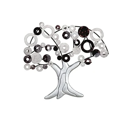 The wall relief "tree" made of metal impresses with its silver surface and accent colours in brown, black and white, ideal for modern living spaces. Measuring 79 cm high and 89 cm wide, the tree wall relief is an impressive decorative piece that adds depth and character to any room. The combination of silver metal and natural accent colors makes the wall relief a versatile piece of art that blends into different home styles. The tree wall relief is 5.5 cm deep and offers a three-dimensional look that brings out the motif of a tree vividly and appealing. This metal wall relief is not only a decorative element, but also an expression of style and elegance, perfect for living rooms or offices.