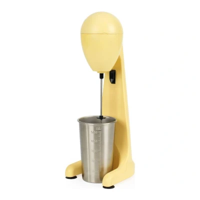 Giles & Posner Funfair Milkshake Maker Iced Coffee Maker, 2 Speeds, 500ml Stainless Steel Cup Blade, Capacity Markings, Secure Clips, Milk Frothing, Cocktails, Electric Mixer, Matte Yellow, 100W