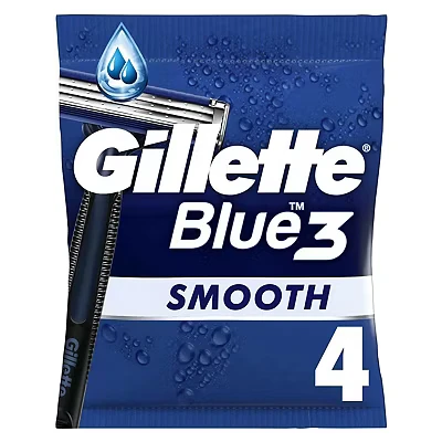The Gillette Blue 3 Disposable Razor (4 pack) features 3 skin-sensing blades, a pivoting head, and a lubricating strip for a smooth, close shave. Its easy-grip handle and chromium-coated blades ensure comfort, control, and long-lasting performance.
