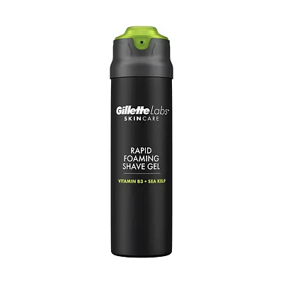 Gillette Labs Rapid Foaming Shave Gel for men delivers instant rich foam for a smooth, irritation-free shave with a refreshing cool sensation. Free from alcohol, dyes, and parabens, it’s gentle for sensitive skin and packaged in recyclable materials for eco-conscious grooming.