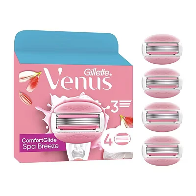 JoybuyGillette Venus 4 ComfortGlide Spa Breeze Blades offer a smooth, close shave with 3 blades and a gel bar infused with white tea fragrance and botanical oils for comfort and protection. Featuring Venus SkinCushion‚Ñ¢ technology, they reduce irritation by 50% and are environmentally friendly with at least 40% recycled packaging.