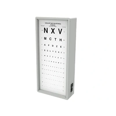 Optometric Chart: Monoyer - 3m Source: fluorescent lamp 18W - 700 lm - Temp. 6500 ° K Viewing Area: 24 x 62 cm External dimensions: 29.5 x 67.5 x 12 cm Weight: 6 Kg
