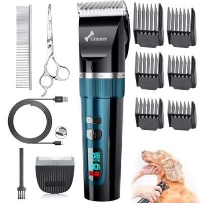 Gimars 2 in 1 Cordless 3 Speed Dog Clippers with Small Paw Trimmer Blade, Low Noise Quiet Rechargeable Pets Hair Thick Coats Trimmers Shaver Kit for Dogs Cats Pet