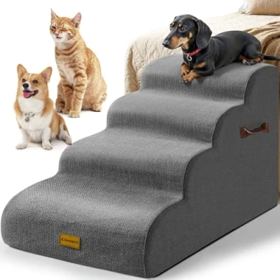 Gimars Extra Wide Sturdy Foam Dog Stairs for High Beds, 4 Step Steps Small Medium Large Dogs