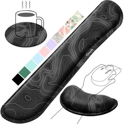 3CM ULTRA THICK MEMORY FOAM: Upgraded memory foam is softer, more comfortable, and supportive, with a slow rebound. The 3cm memory foam keyboard wrist rest is the optimal ergonomic height, alleviating wrist pain caused by weight-bearing, allowing you to work longer hours with less strain ERGONOMIC DESIGN: Our wrist rest is ergonomically designed to elevate your wrists, and with grooves that fit perfectly to your wrists, say goodbye to wrist pain and relieve pressure when typing and using a mouse. Suitable for home, office, or school BUILT TO LAST: The wrist rests features a 3-layer design for durability. The rubber base stays firmly in place on most surfaces; the inner layer is made of thick memory foam for extra support; and the top layer is made of soft, breathable spandex fabric for a skin-friendly feel NON-SLIP BACKING & STICKERS: The wrist pad's bottom is made of a super non-slip natural rubber, which adheres securely to most desks, allowing you to focus on work without the hassle of adjusting. Included stickers provide added protection against slipping. The keyboard wrist pad (43.2 x 8.9 x 3.0 cm) and mouse wrist (16.0 x 8.4 x 3.0 cm) are perfect for most keyboards and mice STAIN-RESISTANT: The top spandex fabric is stain-resistant, making it easy to clean; simply wipe with a damp cloth and let dry. We care about your well-being and shopping experience. This is a must-have accessory and a great choice for frequent computer users. Our support team offers 24-hour assistance