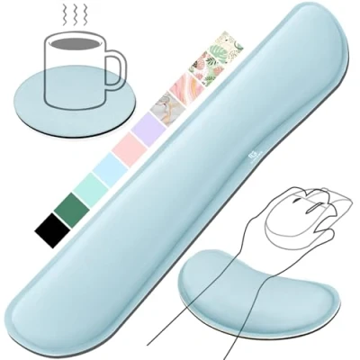 3CM ULTRA THICK MEMORY FOAM: Upgraded memory foam is softer, more comfortable, and supportive, with a slow rebound. The 3cm memory foam keyboard wrist rest is the optimal ergonomic height, alleviating wrist pain caused by weight-bearing, allowing you to work longer hours with less strain ERGONOMIC DESIGN: Our wrist rest is ergonomically designed to elevate your wrists, and with grooves that fit perfectly to your wrists, say goodbye to wrist pain and relieve pressure when typing and using a mouse. Suitable for home, office, or school BUILT TO LAST: The wrist rests features a 3-layer design for durability. The rubber base stays firmly in place on most surfaces; the inner layer is made of thick memory foam for extra support; and the top layer is made of soft, breathable spandex fabric for a skin-friendly feel NON-SLIP BACKING & STICKERS: The wrist pad's bottom is made of a super non-slip natural rubber, which adheres securely to most desks, allowing you to focus on work without the hassle of adjusting. Included stickers provide added protection against slipping. The keyboard wrist pad (43.2 x 8.9 x 3.0 cm) and mouse wrist (16.0 x 8.4 x 3.0 cm) are perfect for most keyboards and mice STAIN-RESISTANT: The top spandex fabric is stain-resistant, making it easy to clean; simply wipe with a damp cloth and let dry. We care about your well-being and shopping experience. This is a must-have accessory and a great choice for frequent computer users. Our support team offers 24-hour assistance