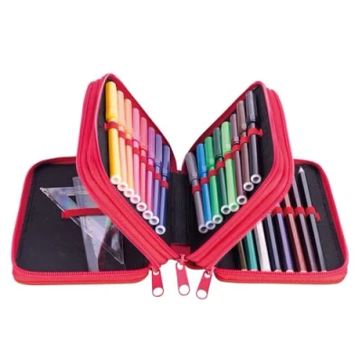 Gimboo 6768BTS73PL-04 School Pencil Case with 3 Compartments / Pencil Case with Zip School Pencil Case Motif - Racing car. The set includes accessories (ruler, set square, 3 pens/ballpoint pen, pencil, eraser, sharpener, 16 markers/felt-tip pens, 16 coloured pencils) The set contains the equipment. Colour: theme/motif – racing car Dimensions: 19 x 11.5 x 6 cm
