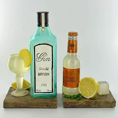 Gin & Tonic Bookends Made from high quality sculpting resin with a hand painted, Quirky finish Height: 21cm Width: 11.5cm Depth: 9cm Weight: 0.54kg each An attractive storage solution for organising and tidying your Books, CDs, DVDs, Vinyls, Magazines and Manuals These make the perfect gift for any Gin and Cocktails fans!