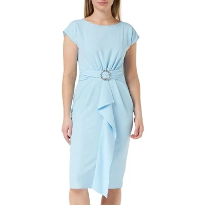 Feel fabulous in this Pelia crepe dress by Gina Bacconi. The satin lined dress features a round neck collar. Featuring diamante buckle detailing at the waist with frill detailing down the skirt. This piece is fully lined and perfect for any occasion