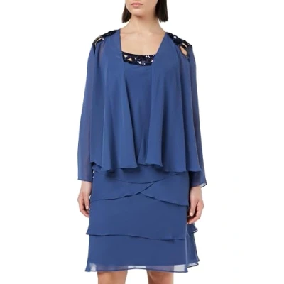 Gina Bacconi Embellished Tiered Sequin Jacket Dress, Wedgewood, 16
