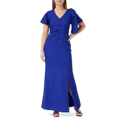 Gina Bacconi Maxi Dress with V Neck and Bow at Sleeve, Cobalt, 10