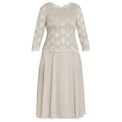 Gina Bacconi Midi Length Dress with Lace Bodice & Chiffon Skirt, Taupe, 16