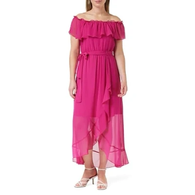 Gina Bacconi Off The Shoulder Maxi Dress with Tie Waist, Azalea, 12