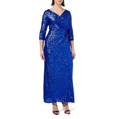 Gina Bacconi Sequin 3/4 Sleeve Wrap Dress with Twist, Royal, 12
