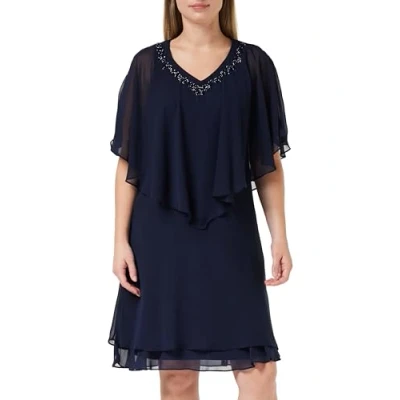 Flattering and elegant this caped chifon bias cut dress features delicate beading at the V-neck front. The attached chiffon cape over-top makes the dress great for all sizes and gives sleeve coverage. The dress has no zip and finishes below the knee.