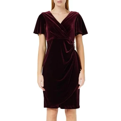 Gina Bacconi Velvet Dress with Embellishment Detail, Wine, 20