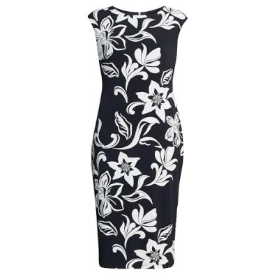 Elevate your wardrobe with the timeless elegance of the Marjorie dress. This sleeveless dress features a black and ivory floral print, offering a striking contrast. Designed with a tailored fit, it flatters the silhouette while providing comfort and sophistication for any occasion. Perfect for cocktail parties or evening events.