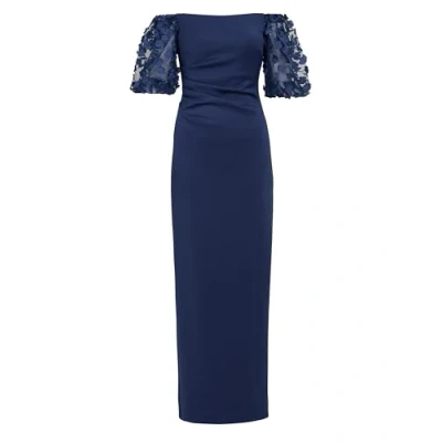 Gina Bacconi Women's Shoulder Floral Sleeve Maxi Dress Cocktail, Navy, 16