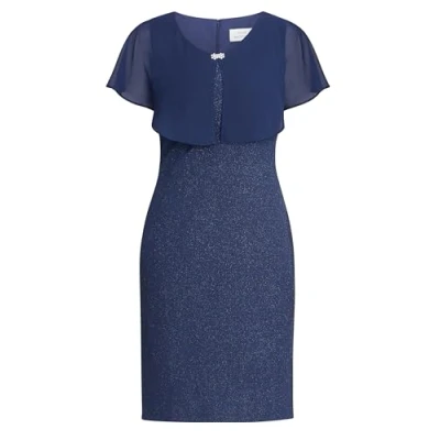 Gina Bacconi Women's V Neck Dress with Embellished Chiffon Overlay Cocktail, Navy, 14