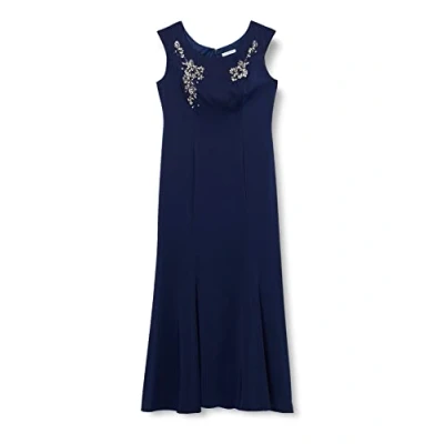 Gina Bacconi Women's Woven Stretch Satin Beaded Maxi Dress Cocktail, Navy, 10