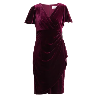 Gina Bacconi Womens Kadie Velvet Dress With Embellishment Detail Wine Size 16 UK