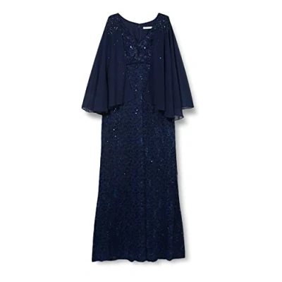 Gina Bacconi Womens Long Fit and Flare V Neck with Illusion Capelet Cocktail Dress, Navy, 12 UK