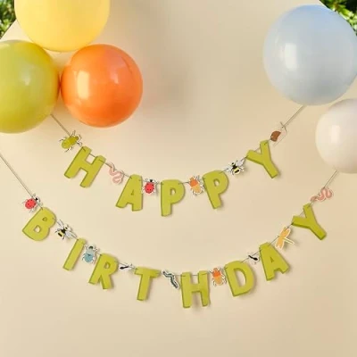 Ginger Ray Creepy Crawly Bugs 'Happy Birthday' Letter Banner Bunting Garland Kids Birthday Party Decoration 1.5m, Green