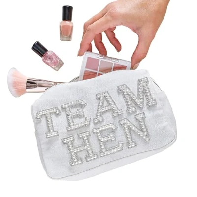 Ginger Ray Embellished Faux Pearls Team Hen Make up Cosmetic Bag Party Accessory 20cm x 12cm