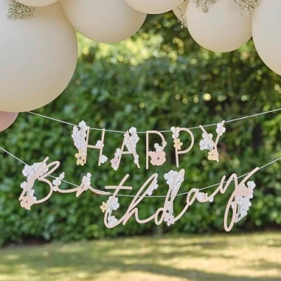 Ginger Ray Floral 'Happy Birthday' Letter Banner Garland Bunting Hanging Decoration 1.5m, Pastel