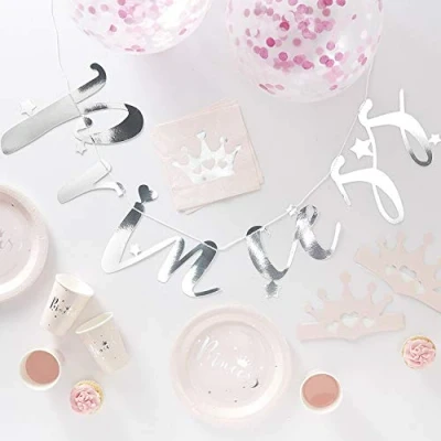 The party in a perfect box complete with all tableware, and decoration items for any special occasion party. Pack contains 16 napkins, 16 plates, 16 Princess tiara 16 party cups, 1 bunting and 5 confetti balloons, Manufacturer: Ginger Ray