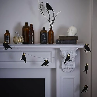 Ginger Ray Halloween Black Crow Wooden Bunting with LED Lights Hanging Party Decoration