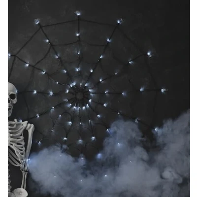 1 x spiderweb light decoration, approx. 1m x 1m in size Battery operated (3 x AA required, not included) for flexible placement Creepy-crawly design perfect for Halloween indoor or party décor Emits an eerie glow to transform walls, windows, or tables Easy to hang and reuse each Halloween season