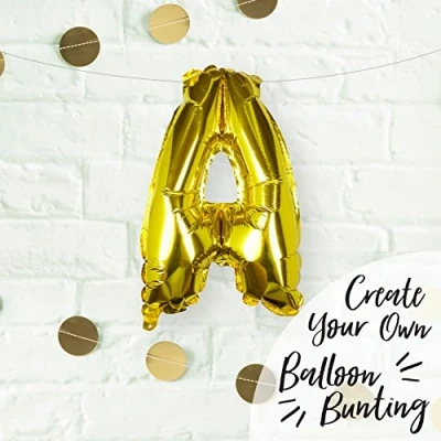 Use these individual letter balloons to create your own balloon bunting. These balloons are easy to inflate - all come with a straw to blow up with air - No helium is needed! Pack Contains a gold 16" A letter balloon with straw to inflate. String is required to thread through holes on balloons to hang the balloons. Please add each balloon letter or number required into your shopping bag to ensure you get the phrase you need., Manufacturer: Ginger Ray