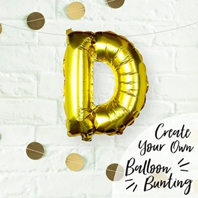 Use these individual letter balloons to create your own balloon bunting. These balloons are easy to inflate - all come with a straw to blow up with air - No helium is needed! Pack Contains a gold 16" D letter balloon with straw to inflate. String is required to thread through holes on balloons to hang the balloons. Please add each balloon letter or number required into your shopping bag to ensure you get the phrase you need., Manufacturer: Ginger Ray