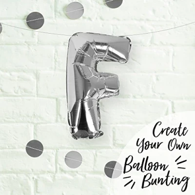 Use these individual letter balloons to create your own balloon bunting. These balloons are easy to inflate - all come with a straw to blow up with air - No helium is needed! Pack Contains a Silver 16" F letter balloon with straw to inflate. String is required to thread through holes on balloons to hang the balloons. Please add each balloon letter or number required into your shopping bag to ensure you get the phrase you need., Manufacturer: Ginger Ray