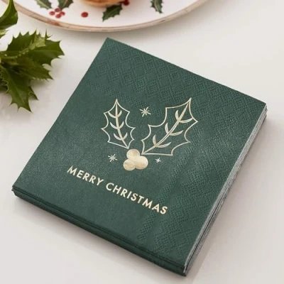 Ginger Ray Merry Christmas Cocktail Paper Party Napkins 16 Pack