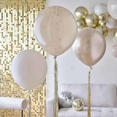 Ginger Ray Neutral and Gold Latex Balloons Bundle Tassel Tails Birthday Party Decorations 3 Pack, One Size
